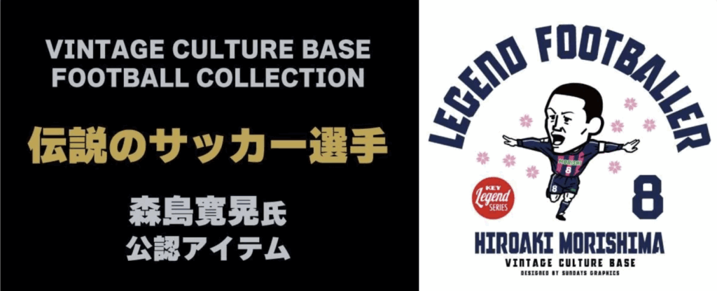 KAKU SPORTS OFFICE(代表 角田壮監)がプロデュースする日本サッカーの歴史や伝説を語り合う文化の拠点「VINTAGE CULTURE BASEフットボールコレクション」。オンラインショップ「KEY LEGEND」(株式会社キャンビー 代表取締役神戸洋昭)とのコラボレーションで森島寛晃選手公認アパレル「LEGEND FOOTBALLER 森島寛晃」をリリースしました。